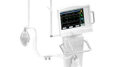 The machine pumps oxygen into the lungs and removes carbon dioxide through a tube.